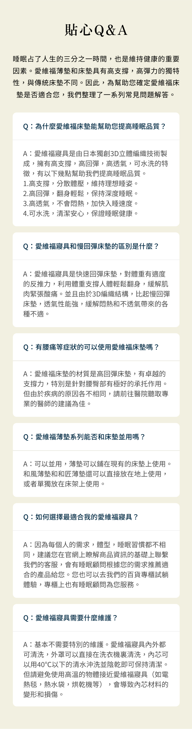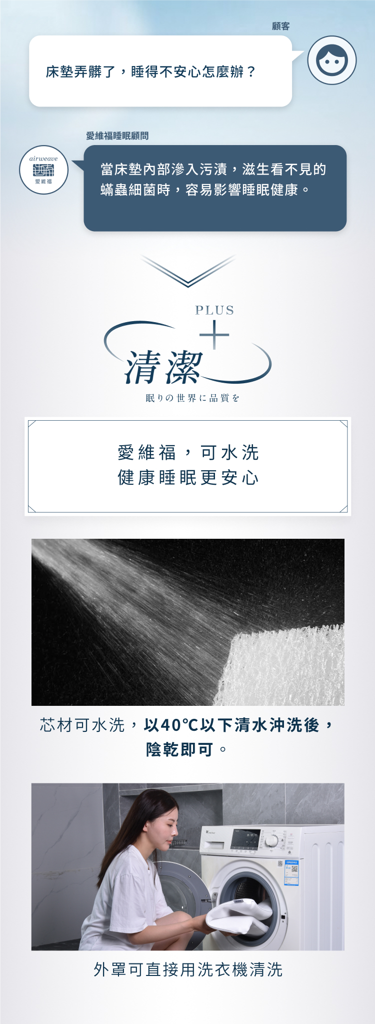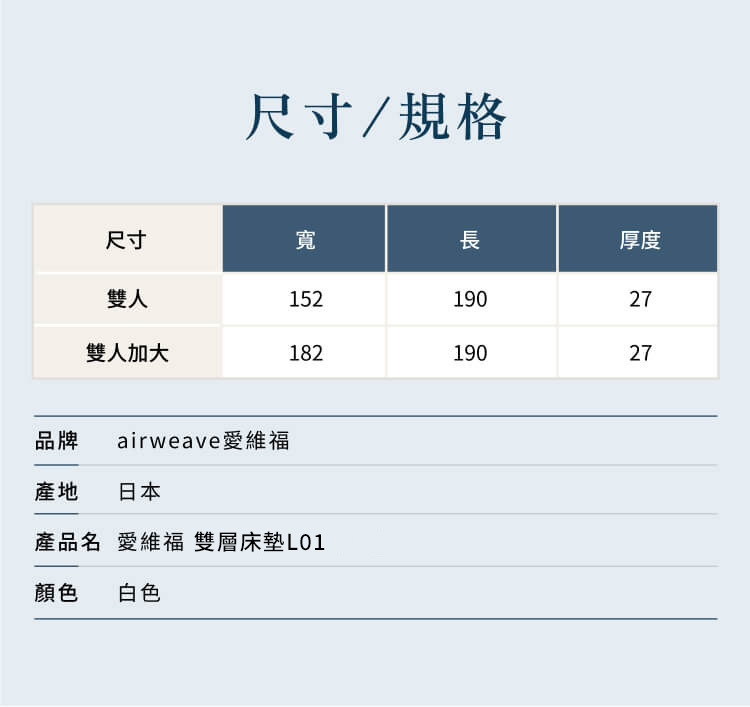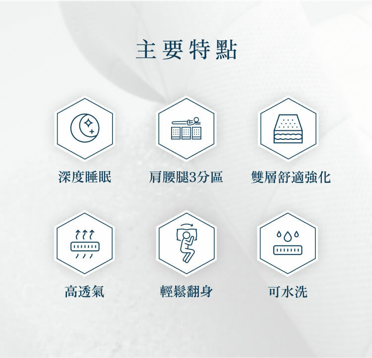 上層舒適層採三段式軟硬度設計,肩部柔軟、腰部支撐、腿部適中,