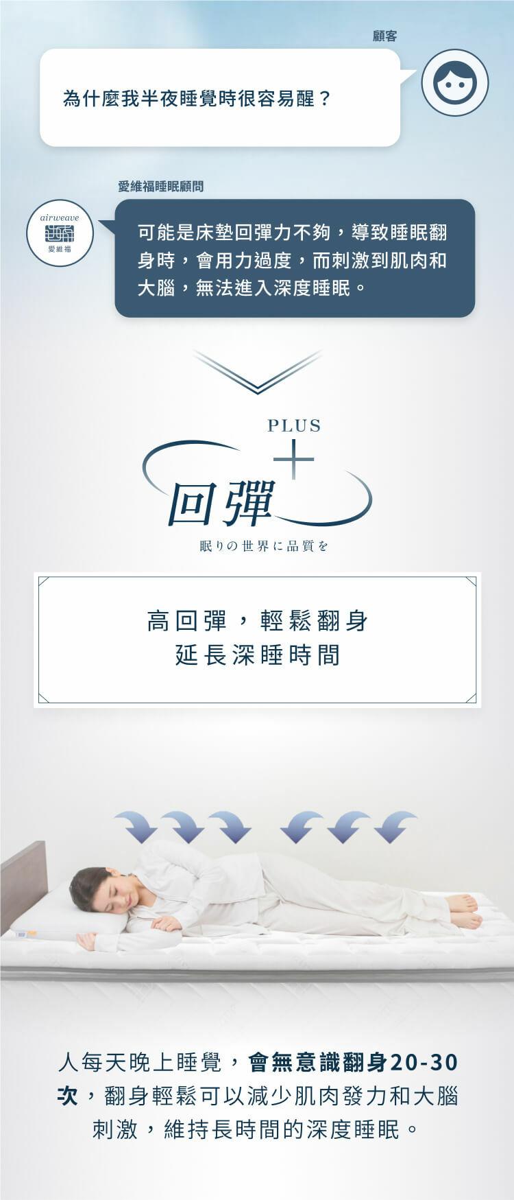 實現輕鬆翻身的獨家特色,感受前所未有的極致舒適。