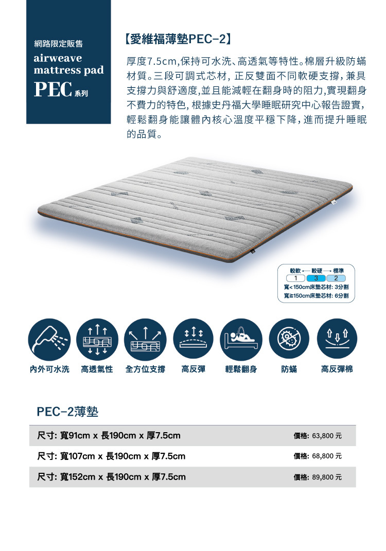 厚度7.5cm,保持可水洗、高透氣等特性。棉層升級防蟎材質。