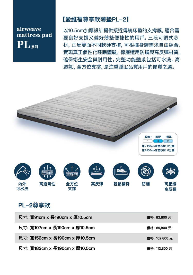 完整功能體系包括可水洗、高透氣、全方位支撐,是注重睡眠品質用戶的優質之選。